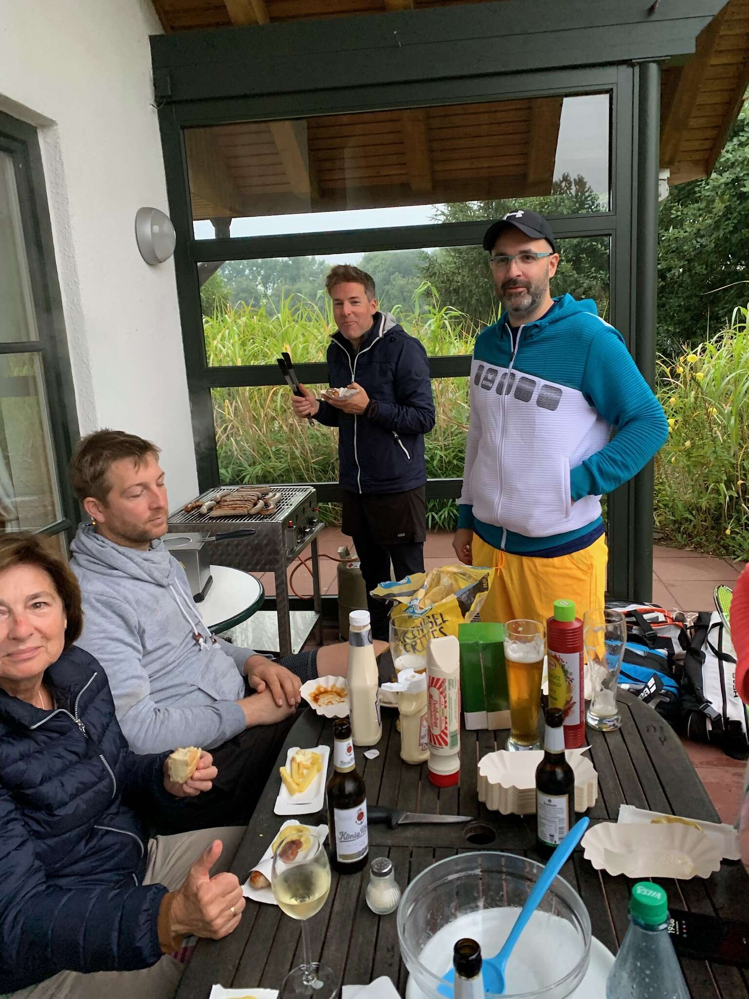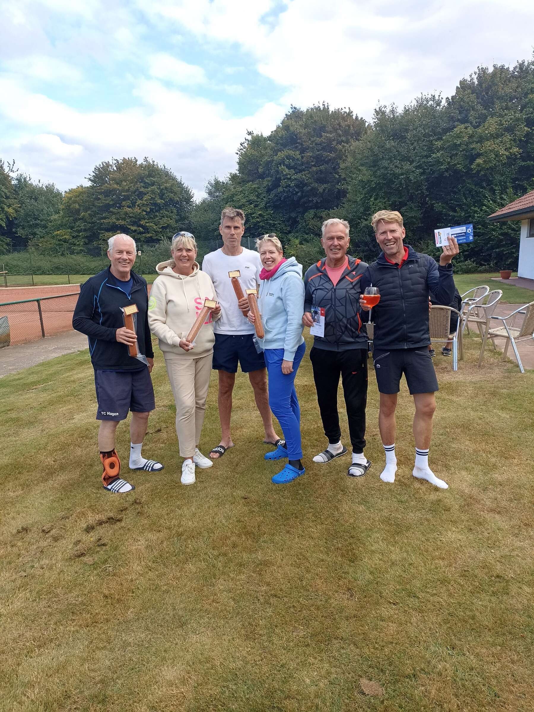 Unser traditionelles Abschlussturnier konnte nach zweijähriger Zwangspause endlich wieder stattfinden. Trotz des Nieselwetters fanden sich zahlreiche Mitglieder ein, so dass alle 6 Plätze den gesamten Nachmittag mit Mixed- und Doppelpaarungen bespielt wurden. Ein geselliger Abend mit Bratwurst und Pommes ließ danach die Saison gelungen ausklingen.