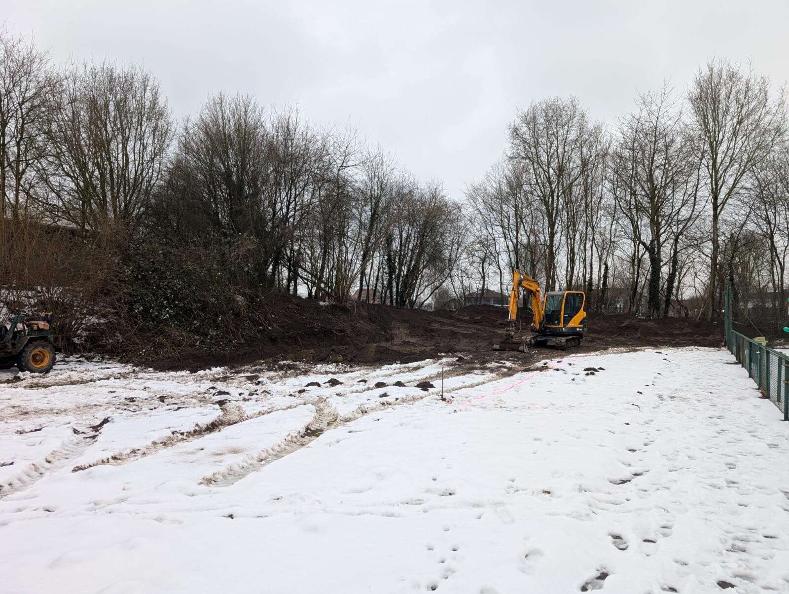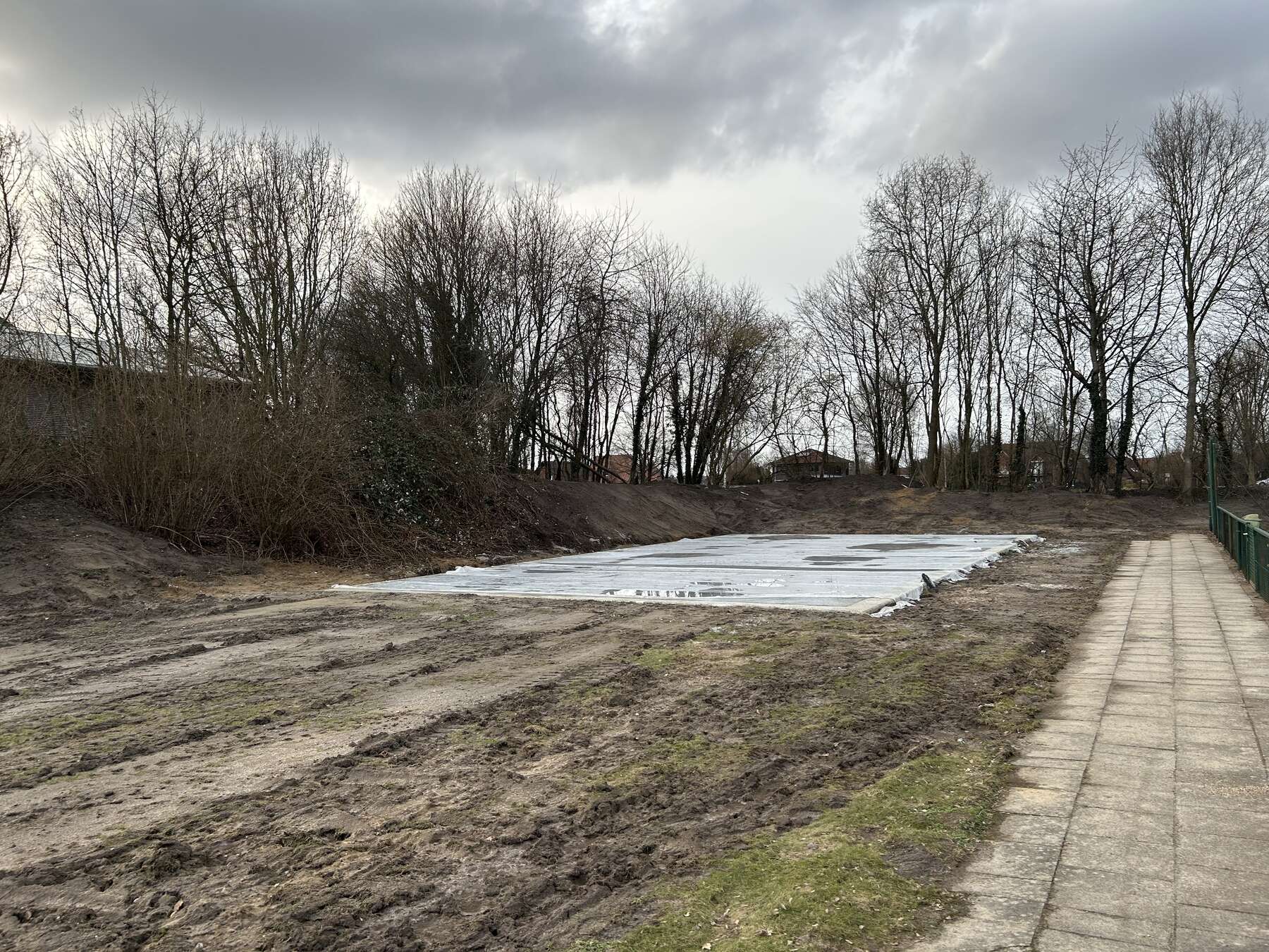 Der Wall und der Pflanzbereich vorm Platz 5 muss dafür etwas frei gemacht werden. Anschließend finden die Tiefbauarbeiten statt.