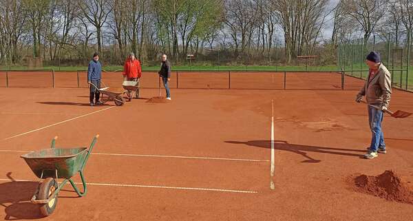 Heute konnte nun richtig mit der Platzaufbereitung gestartet werden. Von 9:00-14:00 Uhr haben einige Mitglieder tatkräftig unterstützt. Auf den Plätzen 1-4 konnte schon frischer Tennissand verteilt werden. Am 28.03. geht es weiter!